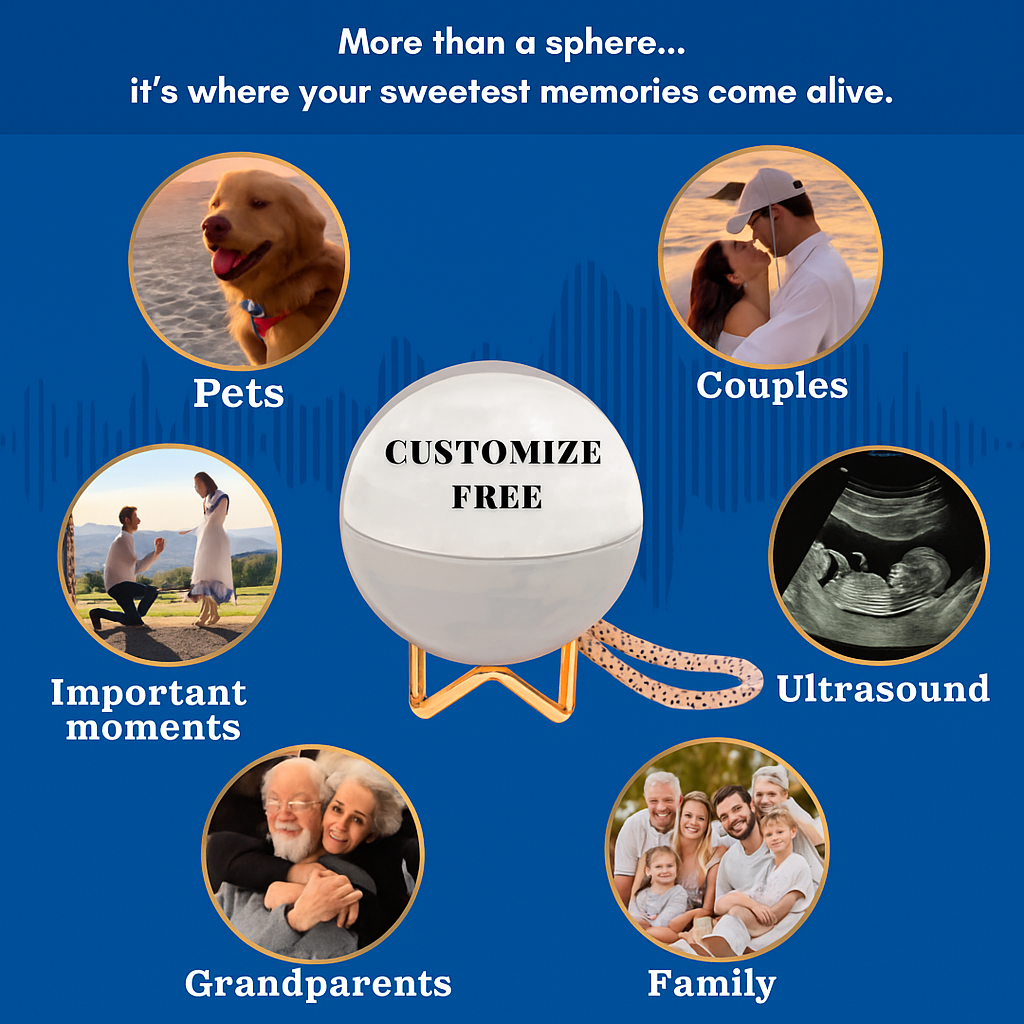 You can turn your pet’s memories into MP4 videos and place them inside our handblown glass orb with built-in speakers.